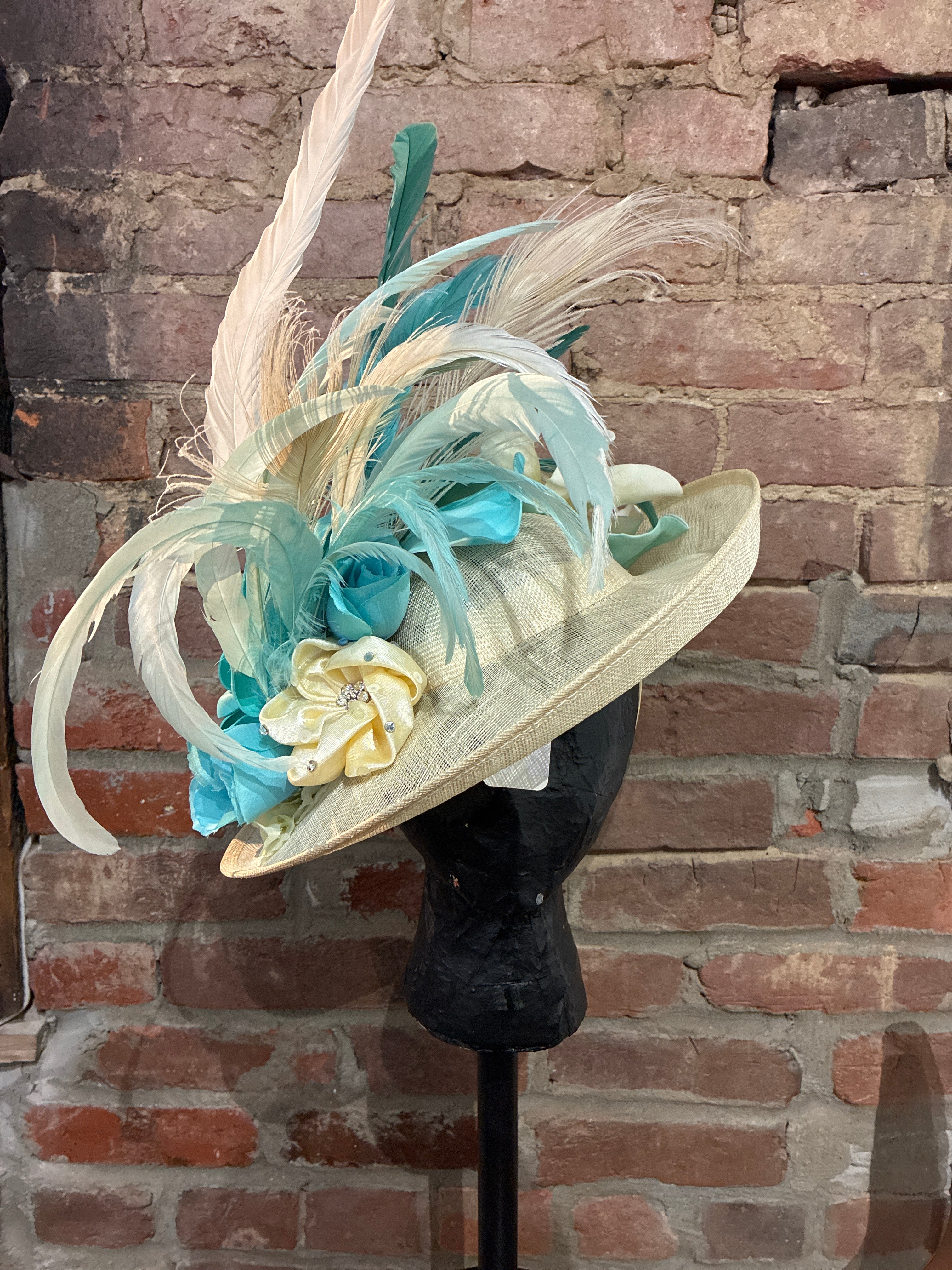 Cream & Turquoise Custom Fascinator