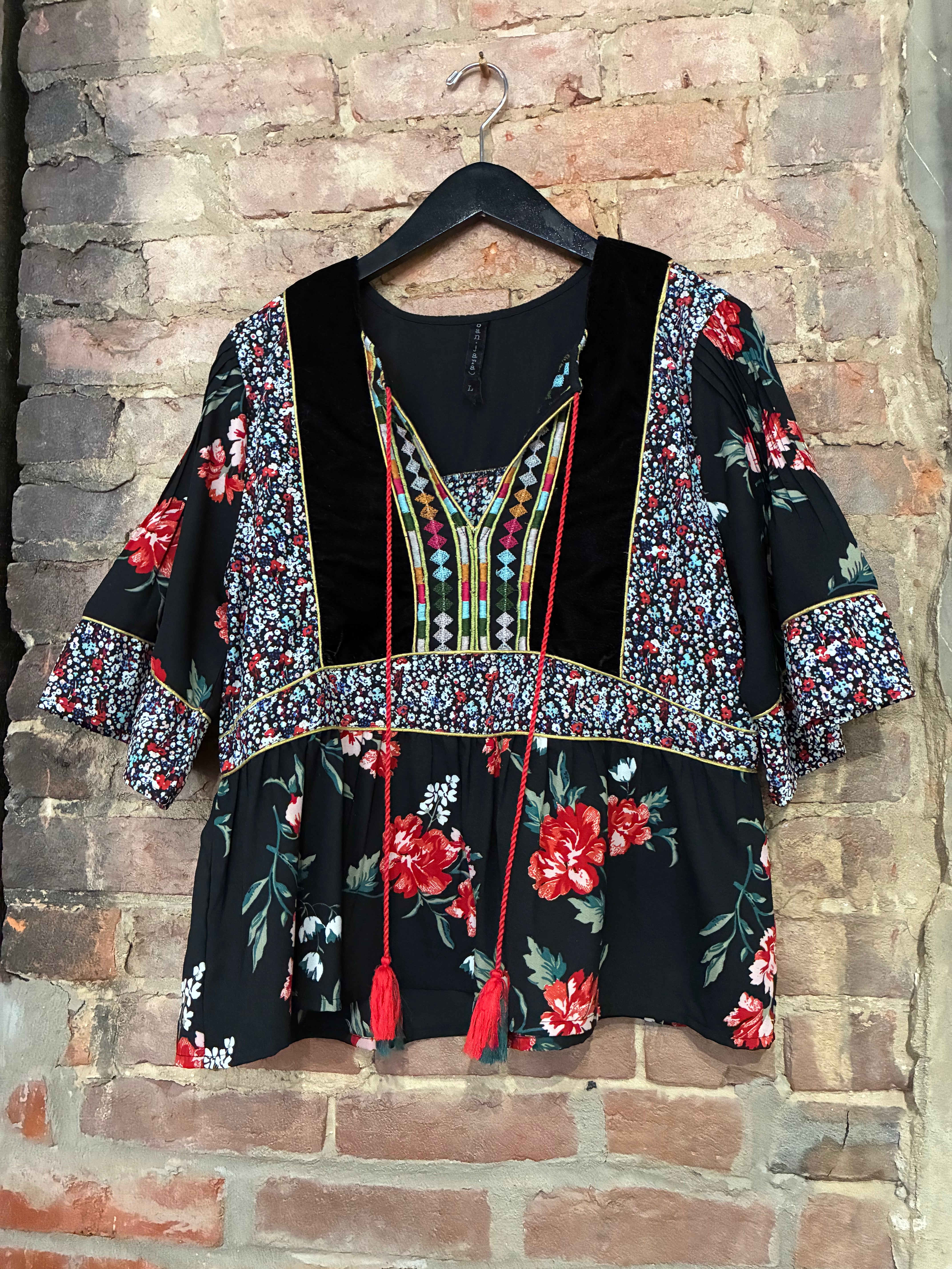 Black Bohemian Floral Print Top