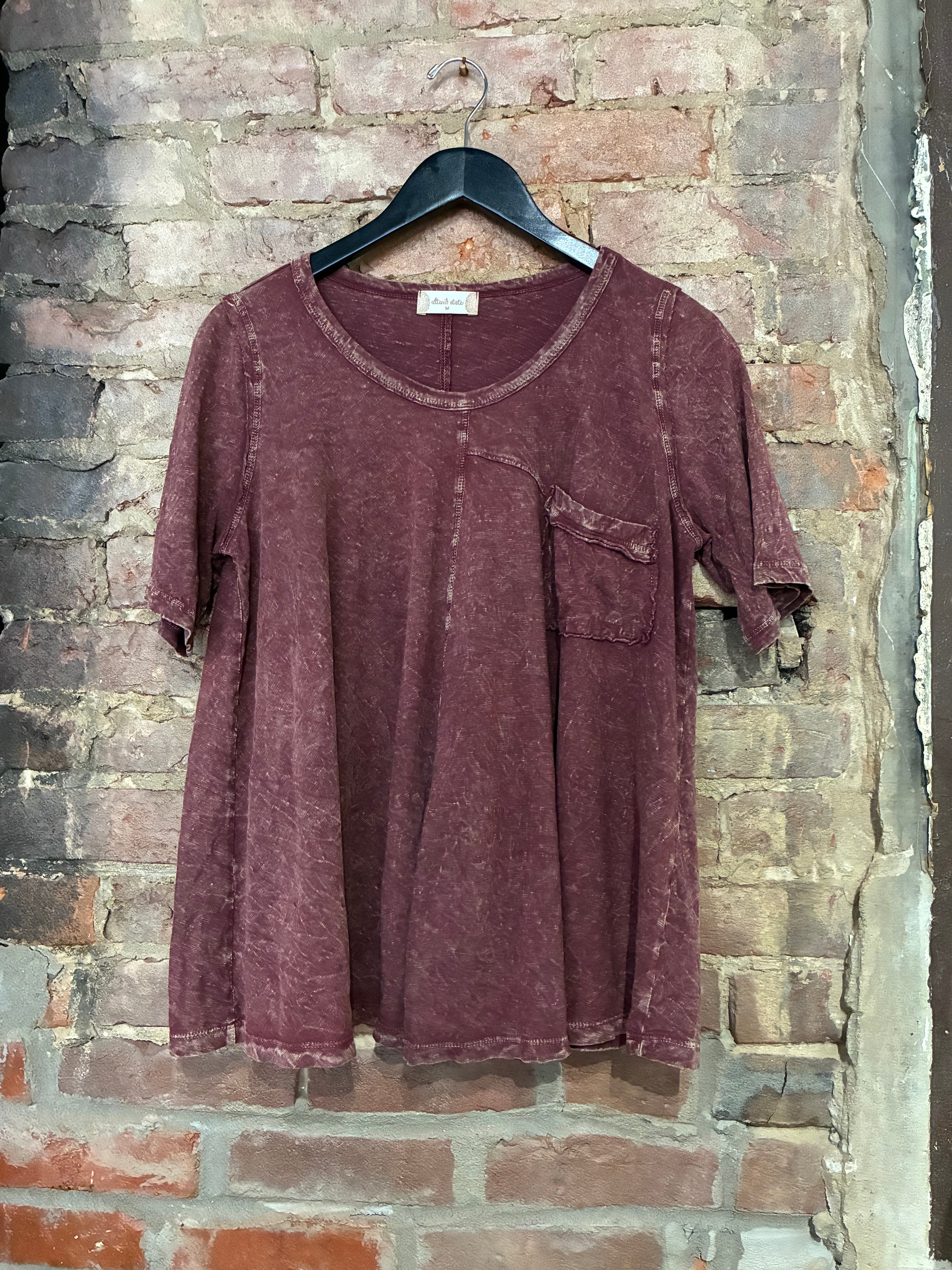 Burgundry Acid Wash Boho Tee