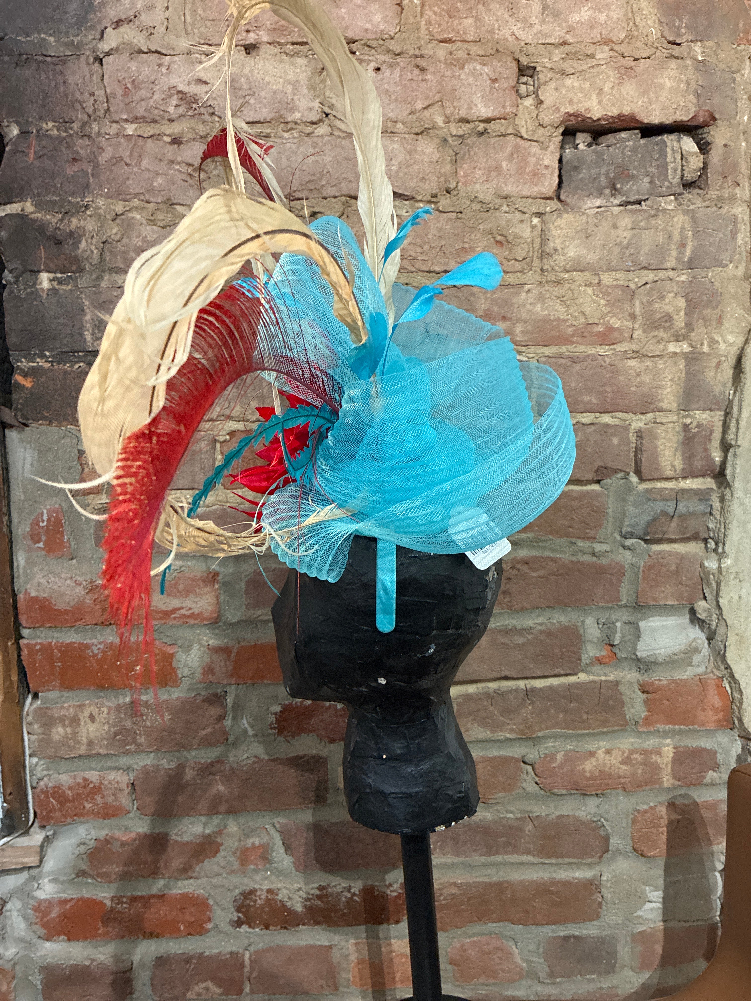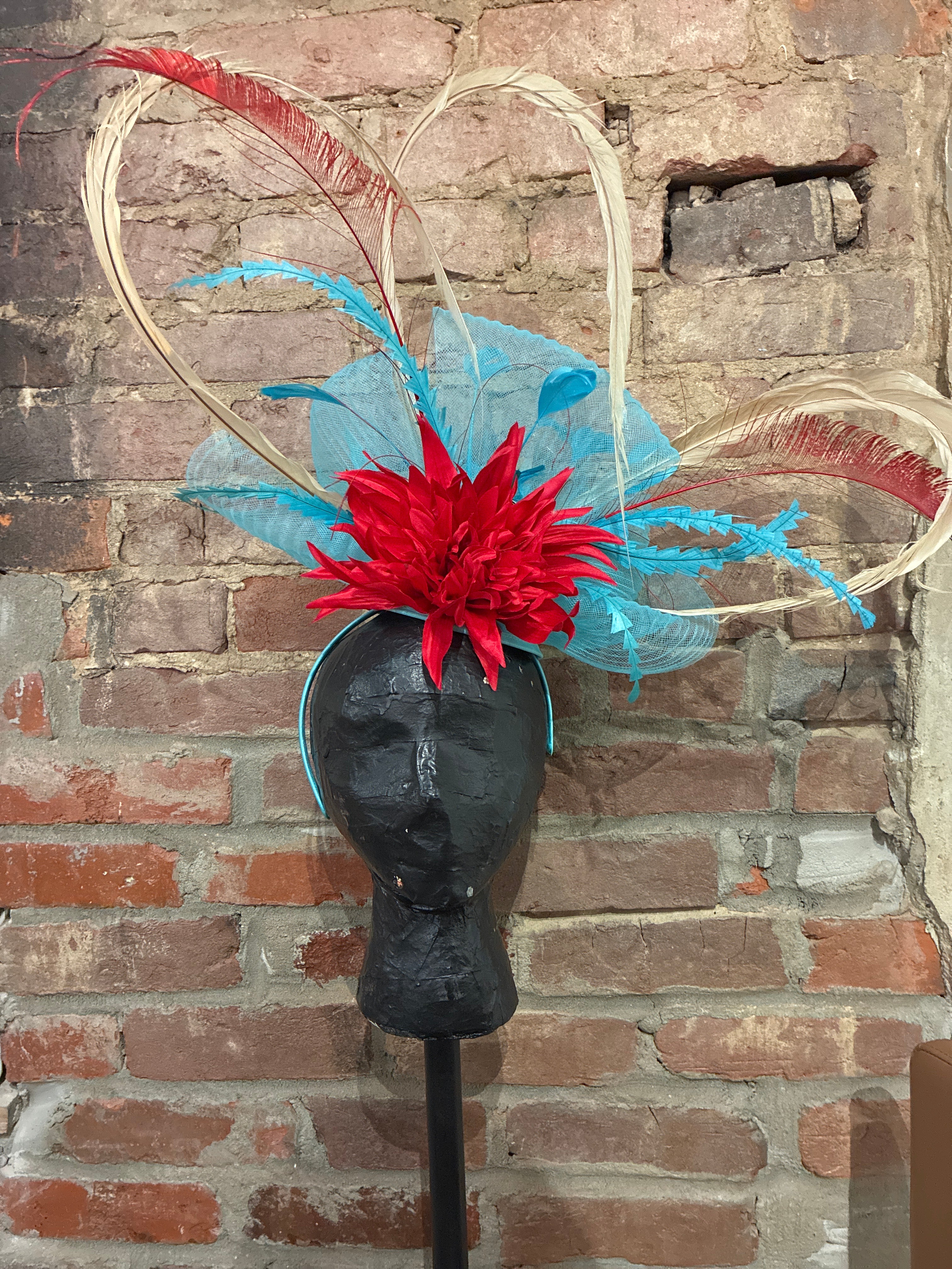 Turquoise & Red Custom DEE's Fascinator