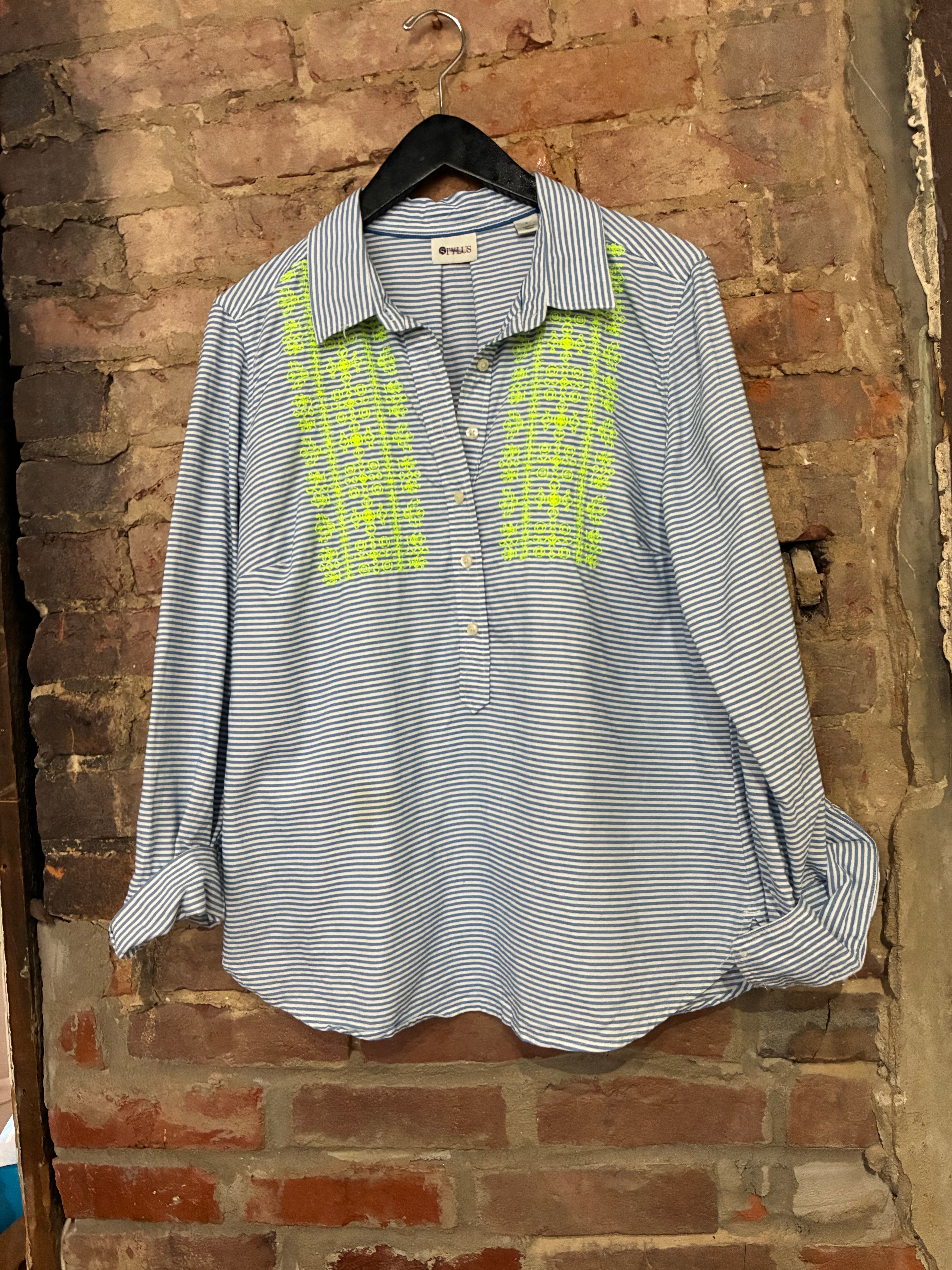 Bright Stripe Embroidered Button Down