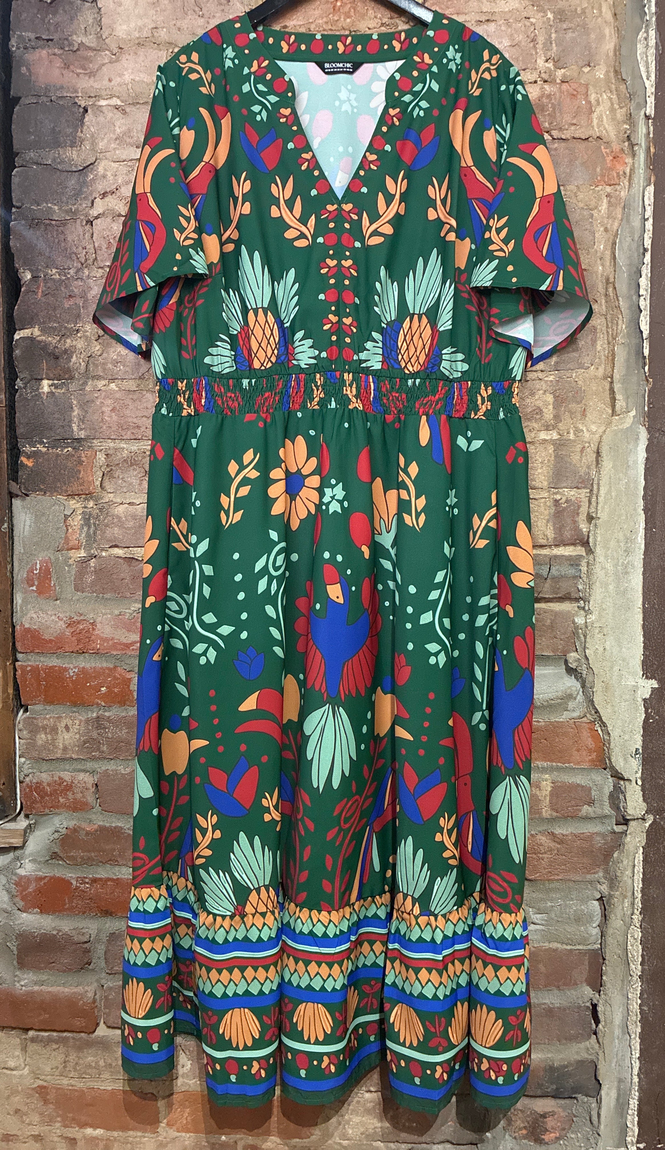 Bloomchic V-Neck Green Printed Dress
