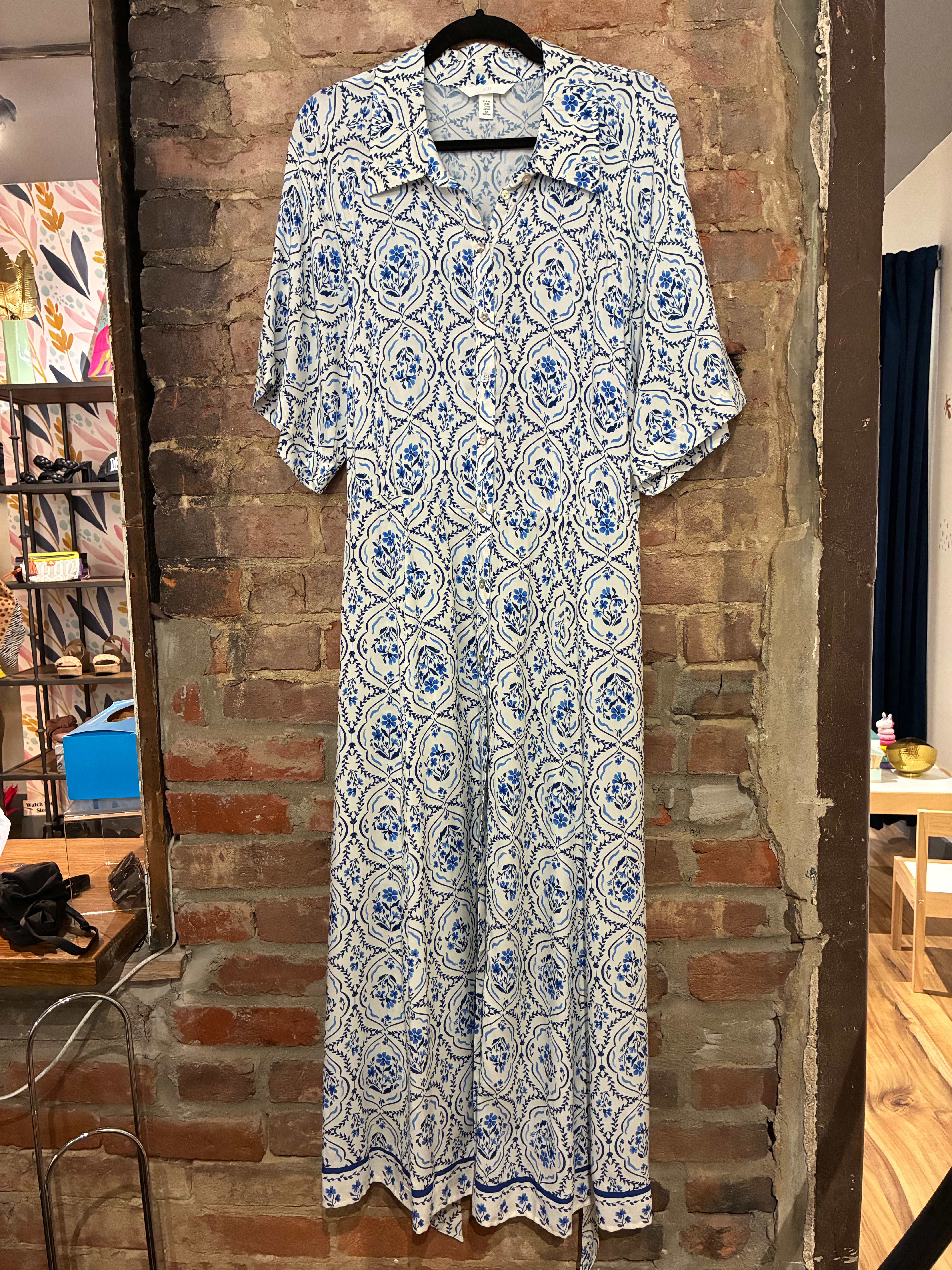 Blue and White Button Up Maxi Dress