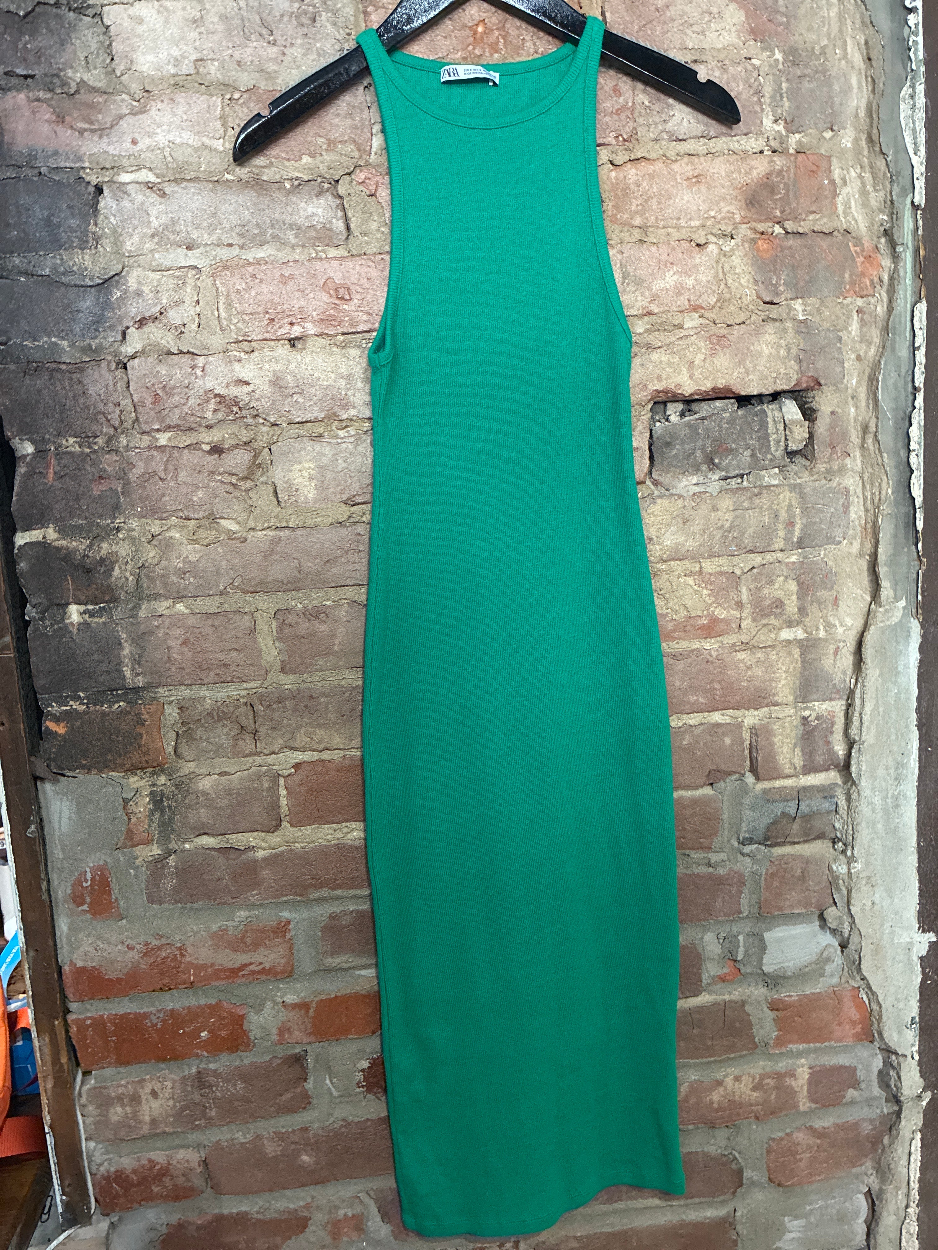 ZARA Green Ribbed Maxi Dress