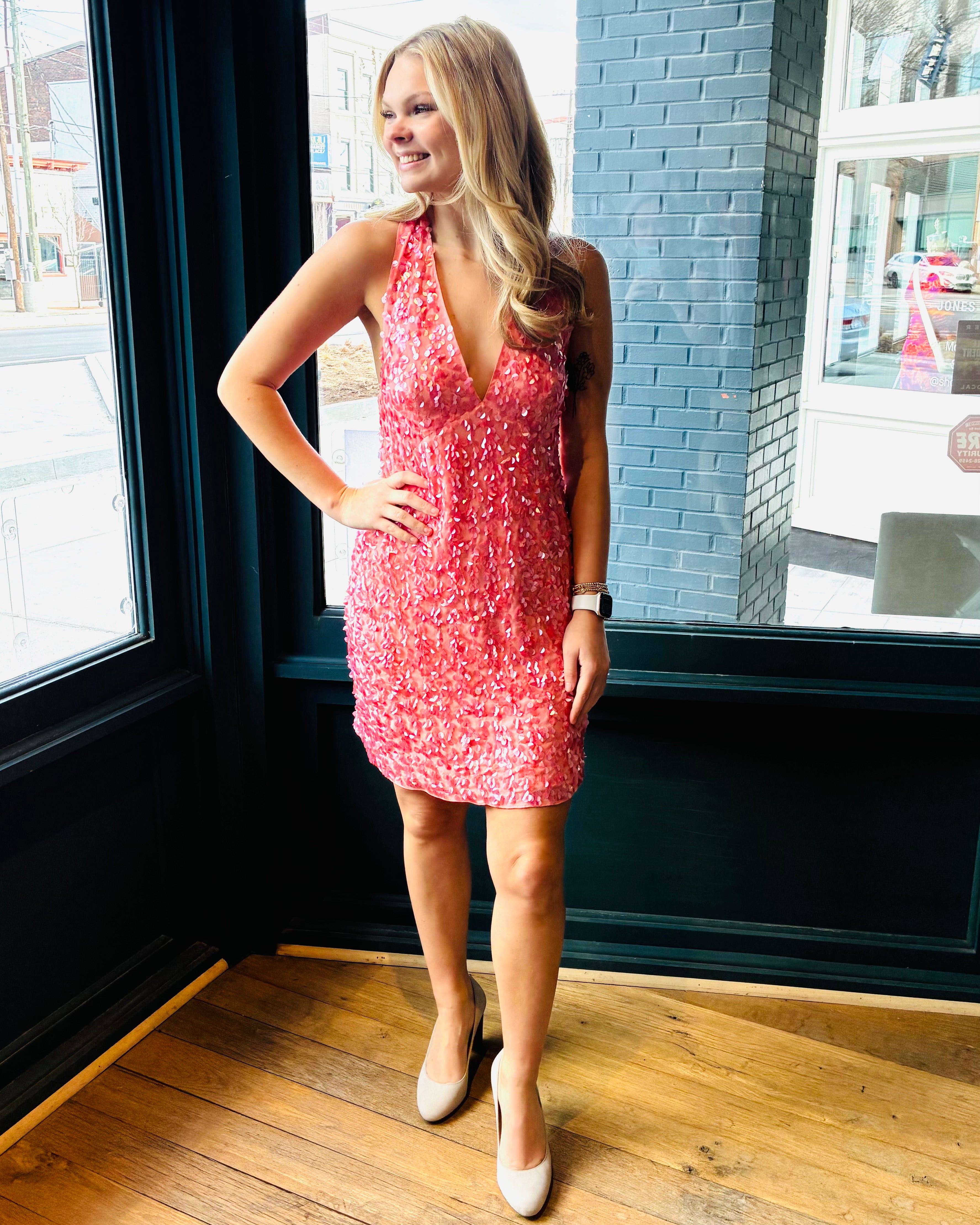 Halston Pink Sequin Dress